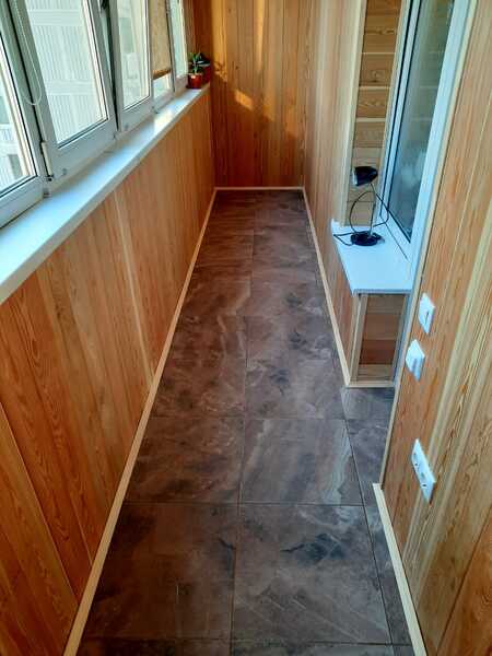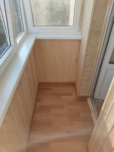 Для отделки на балконах используют разные типы материала: вагонка, евровагонка, блок хаус, деревянная плита. Изготавливаются они из сосны, берёзы, дуба, ольхи, ясеня. Крепится деревянная рейка на обрешётку, поэтому под отделкой остаётся место для укладки утеплителя.